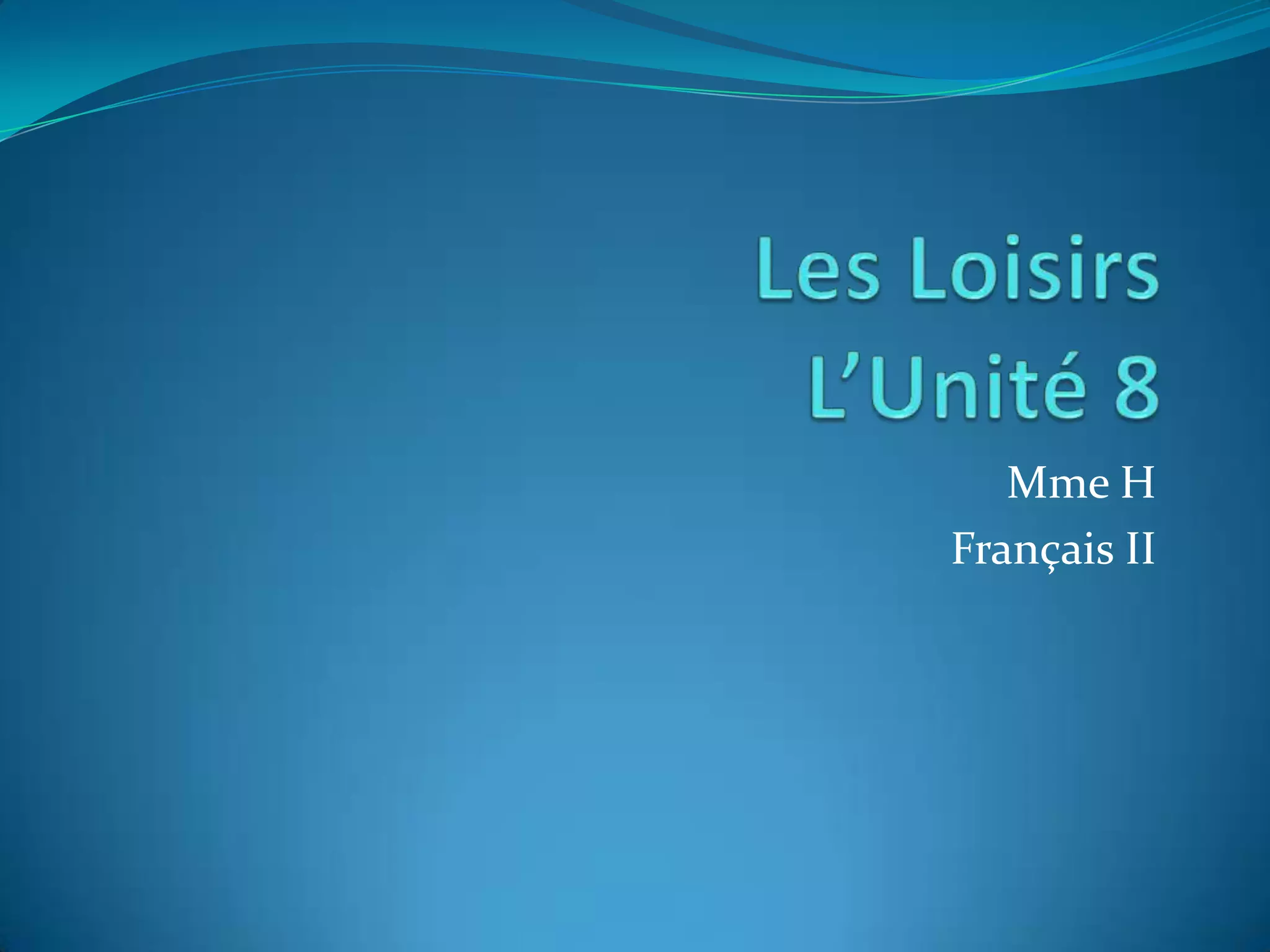 Le document présente des objectifs d'apprentissage en français axés sur les loisirs, incluant des discussions sur les événements, les restaurants, et l'expression de la fréquence des activités. Il aborde les constructions négatives en français ainsi que le vocabulaire associé aux temps verbaux. Enfin, il explique l'utilisation des négatifs au passé composé.