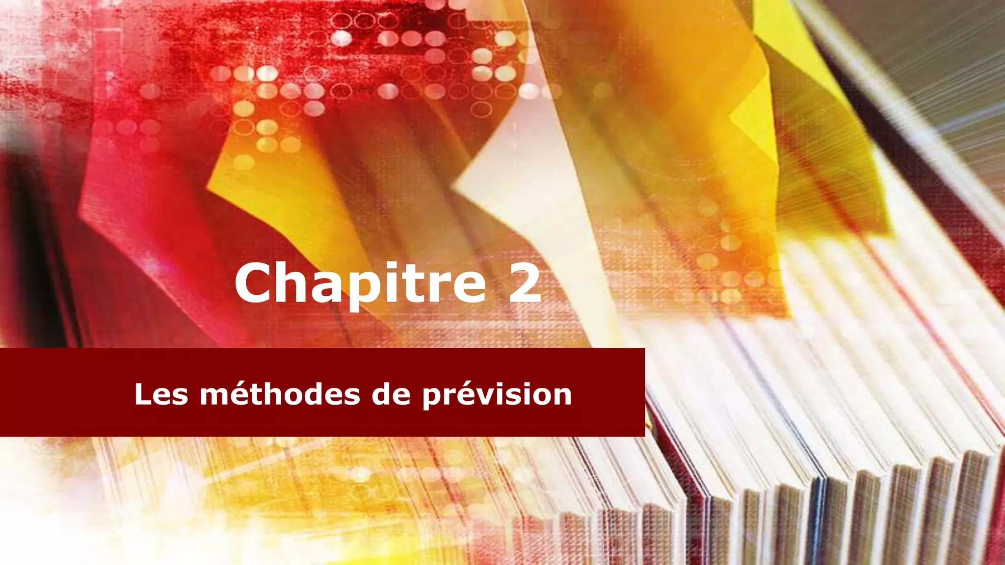 Le chapitre traite des méthodes de prévision, soulignant leur importance pour les entreprises afin de s'ajuster à la demande future. Il détaille les horizons de prévision (court, moyen et long terme) et présente des techniques qualitatives et quantitatives pour estimer la demande, incluant la régression, les séries chronologiques et la méthode Delphi. Enfin, il aborde la décomposition des séries temporelles pour analyser les tendances, saisonnalités et autres facteurs influents.