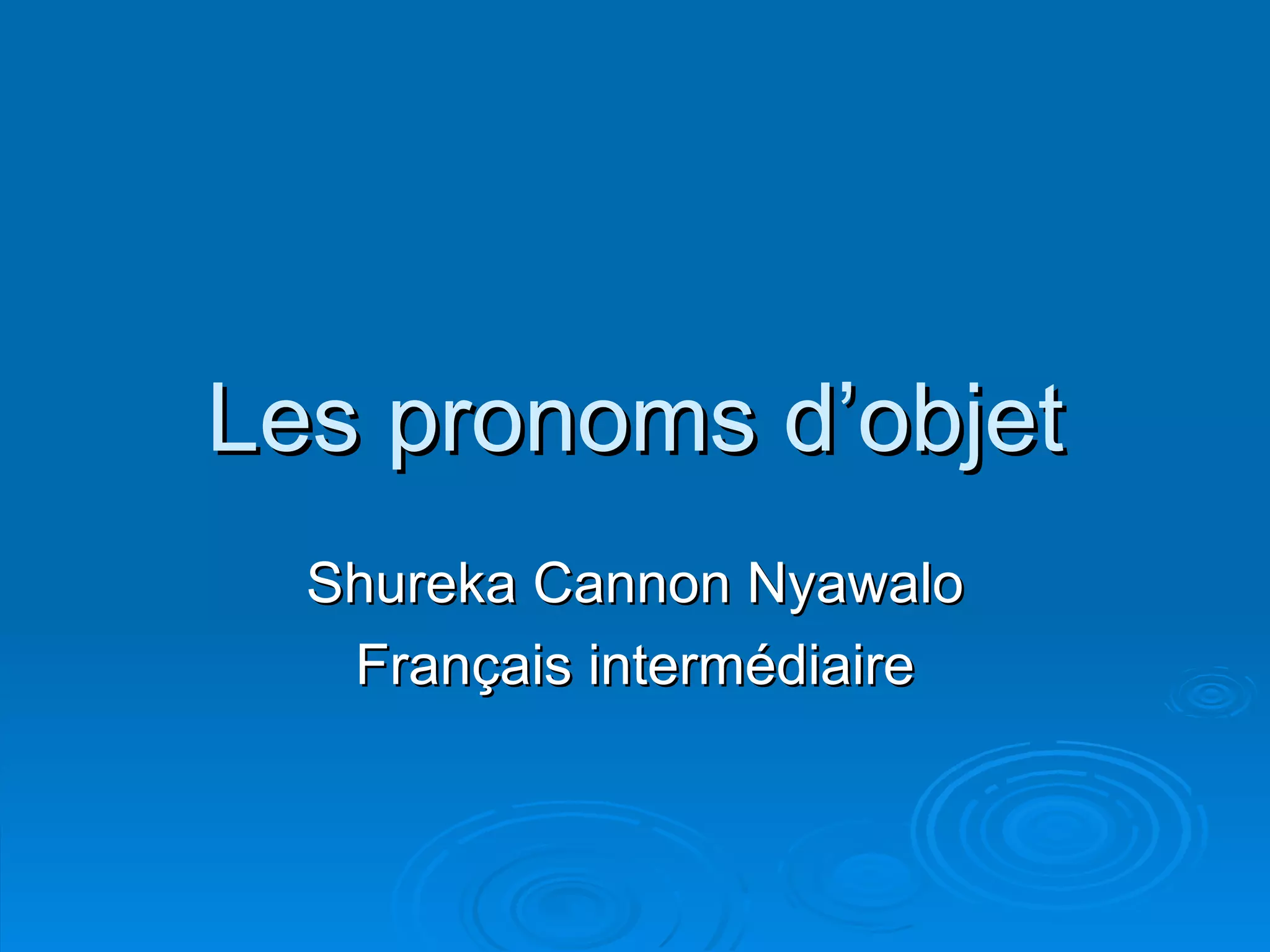 Ce document explique l'utilisation des pronoms d'objet en français, y compris les objets directs, indirects, et les objets introduits par des prépositions. Il fournit des définitions et des exemples, ainsi que des activités pour transformer des phrases à l'aide de ces pronoms. Le texte souligne l'importance de la pratique pour maîtriser leur usage correct dans différentes constructions de phrases.