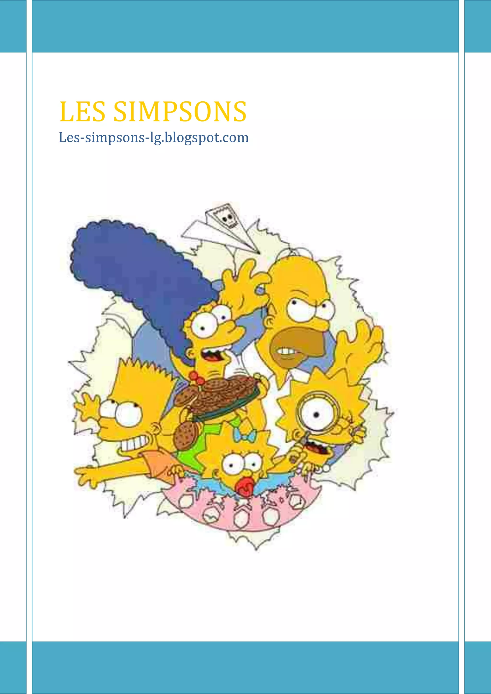 Les Simpsons est une série télévisée d'animation créée par Matt Groening, diffusée depuis 1989 et mettant en avant une famille de classe ouvrière à Springfield, offrant une satire du mode de vie américain. Les personnages principaux incluent Homer, le père imprudent, Marge, la mère, et leurs enfants Bart, Lisa et Maggie, chacun ayant des traits distinctifs. La série, qui se déroule dans une ville fictive dont la géographie est flexible, refuse de préciser sa localisation réelle par des informations contradictoires.