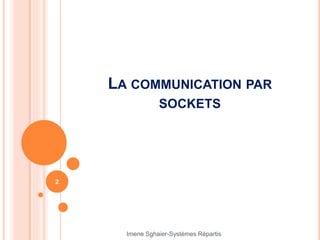 Le document traite de la communication dans les systèmes répartis, en se concentrant sur les sockets, qui sont des canaux de communication bi-directionnels entre processus. Il aborde également le fonctionnement des sockets en Java, la sérialisation pour échanger des données, et les principes de l'invocation de méthodes distantes (RMI) entre machines virtuelles Java. Enfin, des étapes pour créer des applications utilisant RMI sont décrites, incluant la définition d'interfaces et l'enregistrement d'objets distants.