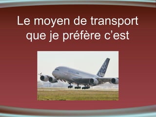 L'auteur exprime une préférence marquée pour un moyen de transport en particulier, en soulignant ses avantages et inconvénients. Il mentionne des aspects tels que la rapidité, le coût et l'impact écologique. Le texte reflète également des préférences personnelles concernant l'utilisation et les circonstances de voyage.