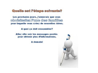 Le document présente plusieurs familles avec des structures et des modes de vie variés, allant de familles avec de jeunes enfants à des couples sans enfants. Chacune cherche des idées pour améliorer la qualité de leurs repas, souvent en raison de leur emploi du temps chargé. Les familles expriment un intérêt particulier pour des recettes et des sauces qui pourraient faciliter la préparation des repas tout en maintenant une certaine qualité.