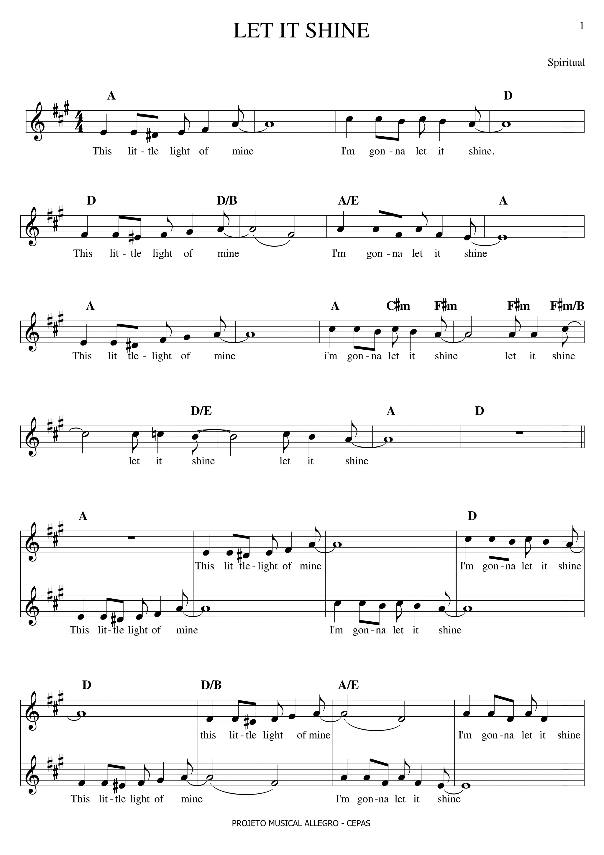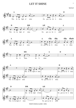 Le document semble contenir des paroles d'une chanson intitulée 'This Little Light of Mine'. Il évoque le thème de laisser briller sa lumière intérieure. Le texte présente plusieurs variations de la mélodie et des accords musicaux associés.