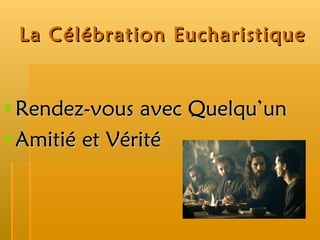Le document discute de l'importance de l'Eucharistie comme une rencontre personnelle avec Jésus, soulignant qu'elle ne doit pas être considérée comme une simple tradition ou obligation. À travers une série de métaphores sur la rencontre et l'amitié, il explique que l'Eucharistie incarne l'amour de Jésus pour l'humanité, offrant à chacun la possibilité de vivre un chemin de bonheur authentique. Le texte invite également les jeunes à renforcer leur relation avec Jésus en participant activement à la messe et en recevant le sacrement de l'autel.