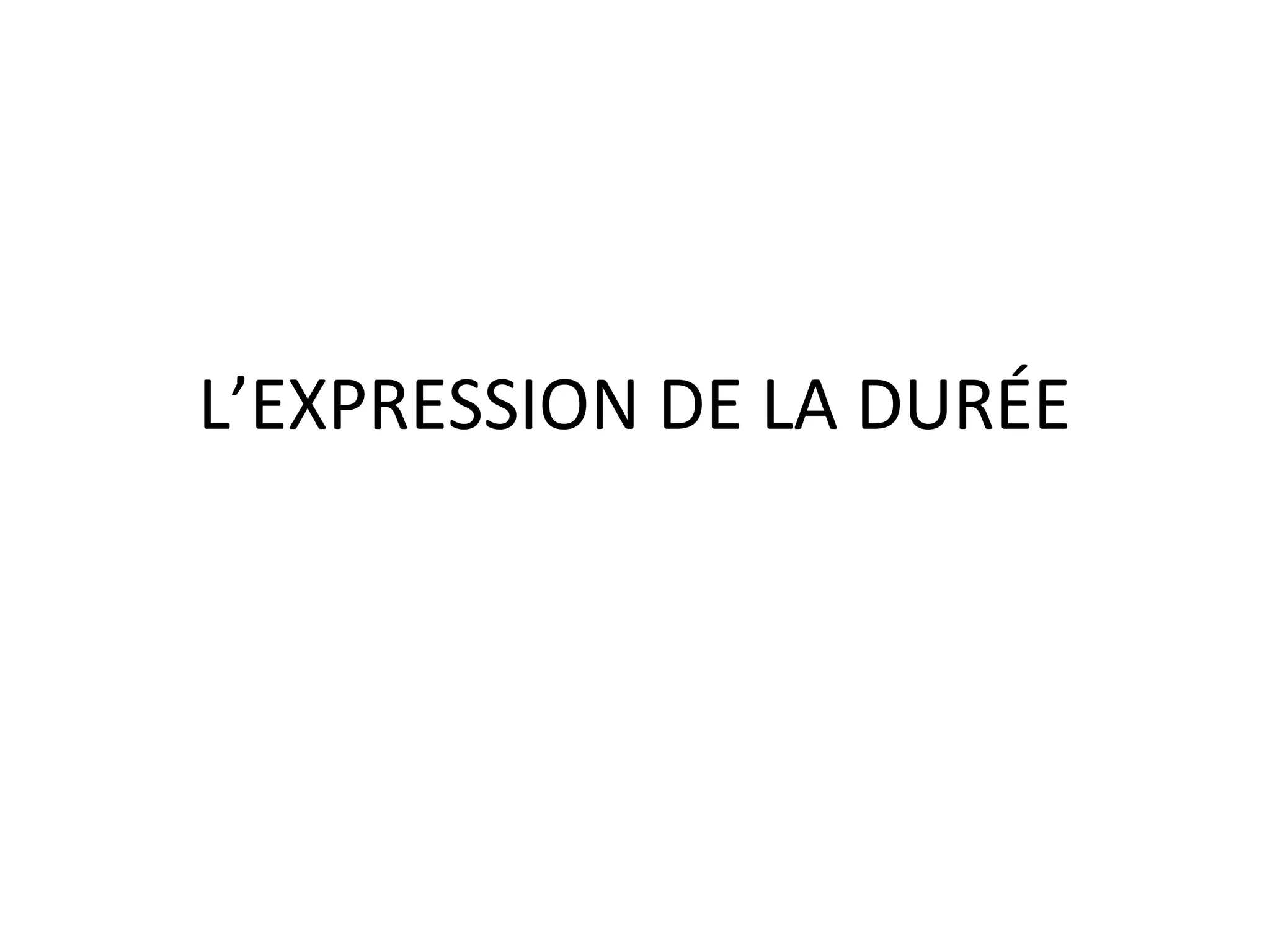 Le document traite des expressions de durée et de temps en français, fournissant des exemples précis pour chaque cas d'utilisation. Il décrit comment utiliser des termes comme 'pour', 'dans', 'il y a', 'pendant', et 'depuis' pour indiquer des durées spécifiques ou situer des événements dans le temps. Ces constructions grammaticales sont illustrées par des phrases pratiques pour démontrer leur utilisation correcte.