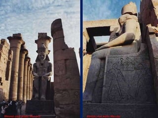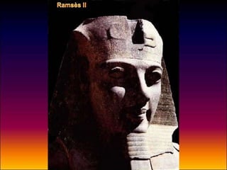 Ramsès II, pharaon de l'Égypte antique, a régné pendant environ 67 ans, bâtissant de nombreux monuments et sculptures à son effigie pour célébrer sa grandeur. Il a amélioré les conditions de vie de son peuple, tout en s'assurant de leur obéissance en échange. Sa favorite, Néfertari, a joué un rôle clé dans sa vie, et sa mort a marqué un tournant dans son règne.