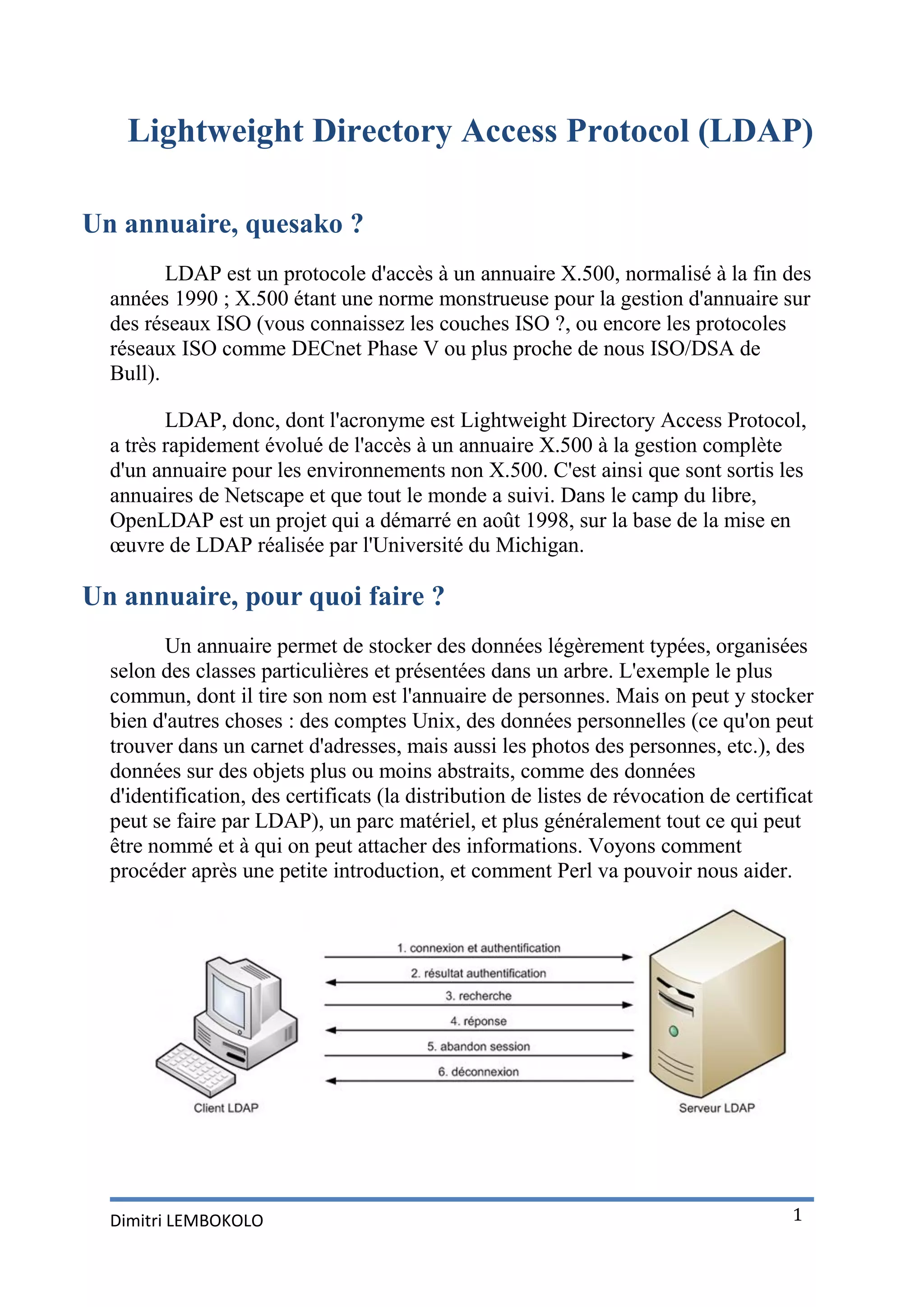 LDAP (Lightweight Directory Access Protocol) est un protocole permettant d'accéder et de gérer des annuaires de type X.500, évoluant vers une gestion d'annuaires non X.500. Ce document présente les différences entre un annuaire LDAP et une base de données relationnelle, ainsi que les processus d'installation, configuration et manipulation des données dans un annuaire LDAP. Il aborde également l'importance des classes d'objets et des attributs pour structurer les informations dans l'annuaire.