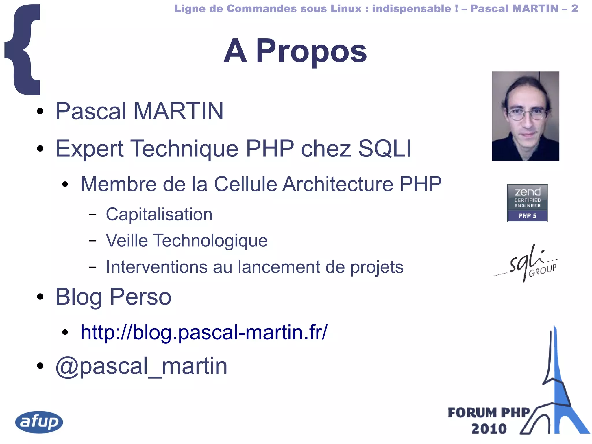 La présentation de Pascal Martin souligne l'importance de la ligne de commande sous Linux pour les développeurs PHP, en particulier dans un environnement où les serveurs fonctionnent sans interface graphique. Elle aborde des concepts clés, tels que l'accès aux serveurs, la manipulation de fichiers, les commandes essentielles et l'utilisation d'éditeurs de texte en ligne de commande. Enfin, la présentation encourage les utilisateurs à se familiariser avec ces outils pour améliorer leur efficacité dans le développement et la gestion des systèmes.