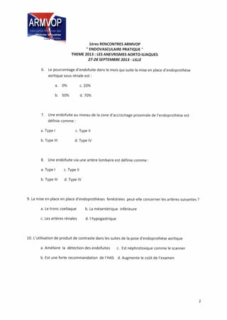 Le document traite des anévrismes aorto-iliaques, abordant divers types d'anévrismes ainsi que les examens de diagnostic appropriés. Il discute également des critères radiologiques pour décider de l'option chirurgicale et des complications détectables par écho Doppler. Enfin, il aborde les endofuites et l'utilisation de produits de contraste après la mise en place d'endoprothèses aortiques.