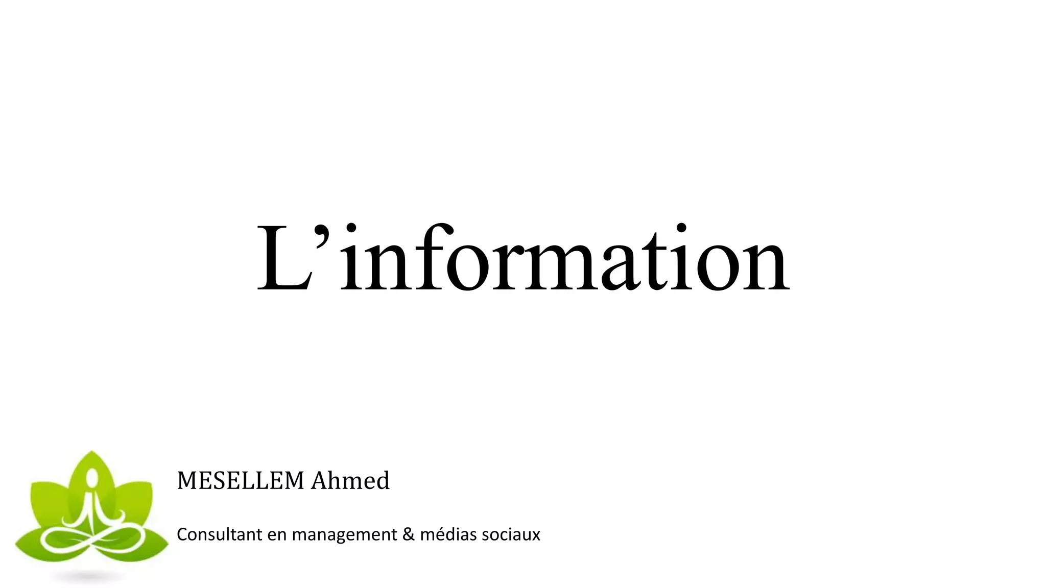 Le document traite des systèmes d'information, en définissant leur rôle dans la gestion d'entreprise et l'amélioration de la prise de décision. Il aborde différents types d'informations et leurs sources, ainsi que les qualités et fonctionnalités attendues d'un système d'information efficace. Enfin, il souligne l'importance d'une information de bonne qualité pour le développement stratégique.