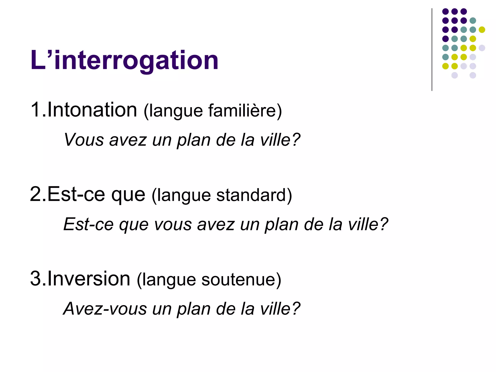 Le document explore différentes structures d'interrogation en français, incluant des exemples en langue familière, standard et soutenue. Il présente également des mots interrogatifs et propose des situations pour formuler des questions dans divers contextes comme un restaurant ou une boulangerie. Enfin, il invite à imaginer des questions appropriées selon différentes situations.
