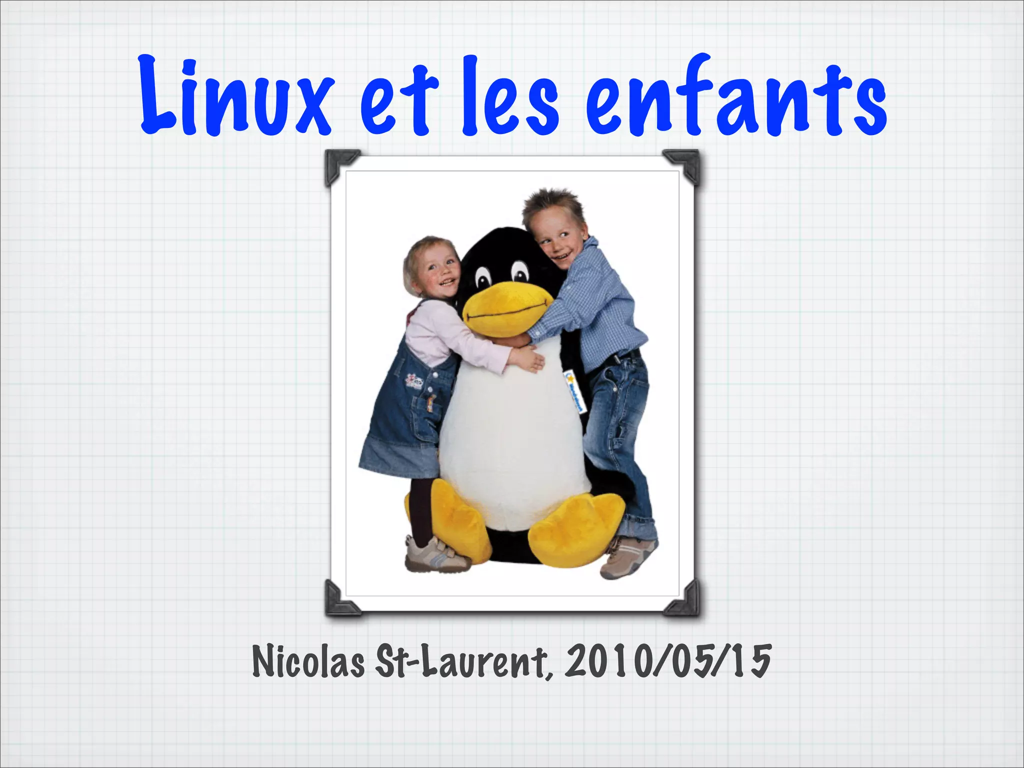 Le document présente différents systèmes éducatifs basés sur Linux pour les enfants, tels que EduPup, Qimo, et Edubuntu, chacun adapté à des tranches d'âge spécifiques. Il décrit les caractéristiques, logiciels et techniques associés à chaque distribution. Enfin, il encourage l'implication dans la communauté open source et fournit des ressources supplémentaires.