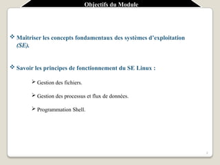 Ce document présente les concepts fondamentaux des systèmes d'exploitation, en se concentrant sur le système Linux. Il aborde l'historique, l'architecture, et les fonctions des systèmes d'exploitation, ainsi que les caractéristiques spécifiques de Linux telles que la portabilité, le multitâche et la gestion des utilisateurs. La synthèse inclut également les avancées théoriques et pratiques qui ont conduit à la formation des systèmes modernes d'exploitation.