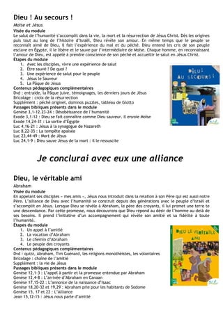 Le document présente un module pédagogique centré sur la relation entre Dieu et l'humanité, en mettant l'accent sur des figures bibliques telles que David, Moïse, et Jésus. Il aborde des thèmes de faiblesse, d'alliance, de réconciliation et de conversion, avec des références bibliques et des contenus complémentaires pour enrichir l'apprentissage. Divers modules spécifiques sont conçus pour enseigner la foi chrétienne, les sacrements et le parcours spirituel à travers les étapes liturgiques.