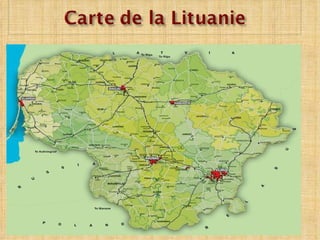 La Lituanie est un pays d'Europe situé près de la mer Baltique, avec le lituanien comme langue officielle. Elle a retrouvé son indépendance en 1990 après avoir été occupée par les Soviétiques et est devenue membre de l'Union européenne en 2004. La Lituanie est connue pour ses paysages naturels avec de nombreux lacs et rivières, ainsi que pour sa tradition de basket-ball.