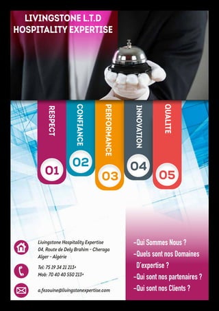 Livingstone Hospitality Expertise est une société de gestion hôtelière qui accompagne les projets de construction et d'exploitation d'hôtels, offrant des services allant de la conception à la pré-ouverture. Elle propose des contrats de gestion flexibles et des solutions adaptées, tout en s'appuyant sur des partenaires expérimentés dans le développement et la gestion hôtelière. La société se concentre sur la qualité et l'innovation pour assurer le succès des établissements qu'elle gère.