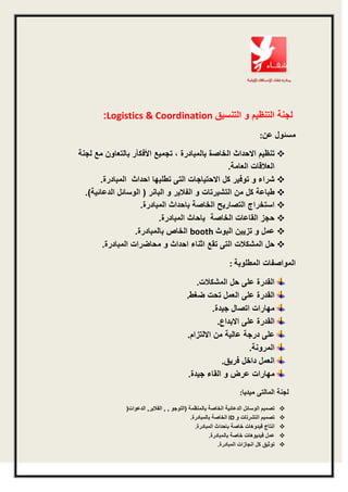 Le document aborde la logistique et la coordination, mentionnant spécifiquement l'organisation d'un stand. Il semble contenir des éléments discontinus et peu détaillés. Des informations précises sur les différentes tâches logistiques sont attendues.