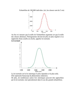 Le document explique la loi normale, un modèle statistique fondamental décrivant des phénomènes aléatoires. Il aborde la création d'histogrammes, les propriétés de la loi normale et comment utiliser des tables de probabilités associées. Enfin, il illustre des exemples pratiques d'application de la loi normale pour calculer des probabilités liées à des échantillons.
