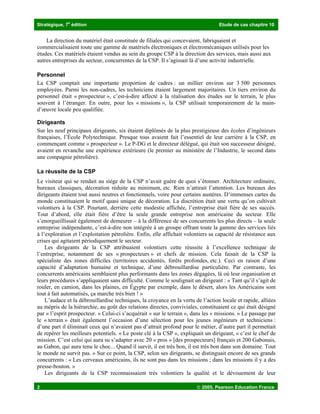 La Compagnie des Services Pétroliers (CSP) est une entreprise française spécialisée dans la réalisation d'études pour l'exploration pétrolière, employant environ 3 500 personnes et réalisant un chiffre d'affaires de près d'un demi-milliard d'euros. Bien qu'elle soit indépendante et résiliente face aux crises, CSP doit faire face à des défis liés à l'évolution technologique, au recrutement de spécialistes en informatique et à la nécessité d'adaptation des pratiques managériales pour garantir sa pérennité. Un cabinet de conseil a recommandé une transformation radicale, incluant un changement de culture d'entreprise et une redéfinition stratégique pour s'adapter à un environnement compétitif en mutation.