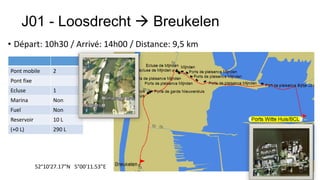 Le document décrit un itinéraire fluvial à travers plusieurs villes des Pays-Bas et de Belgique, incluant des détails sur chaque étape, les distances et les caractéristiques géographiques. Il présente également des historiques sommaires de villes comme Breukelen, Utrecht, Gorinchem, Willemstad, Zierikzee, Colijnsplaat, Wemeldinge, Anvers, et Willebroek. Chaque section aborde la fondation, l'évolution et l'importance culturelle ou historique de ces localités.