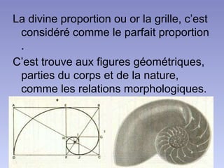 La grille reticulaire d'or, ou proportion divine, est considérée comme la parfaite proportion dans les figures géométriques, le corps humain et la nature, connue depuis plus de deux mille ans. Les Grecs l'ont utilisée dans la conception de temples, et au cours de la Renaissance, des artistes comme Léonard de Vinci l'ont appliquée dans leurs œuvres, notamment dans 'La Gioconda'. Cette proportion est souvent associée au nombre phi, 1,618.