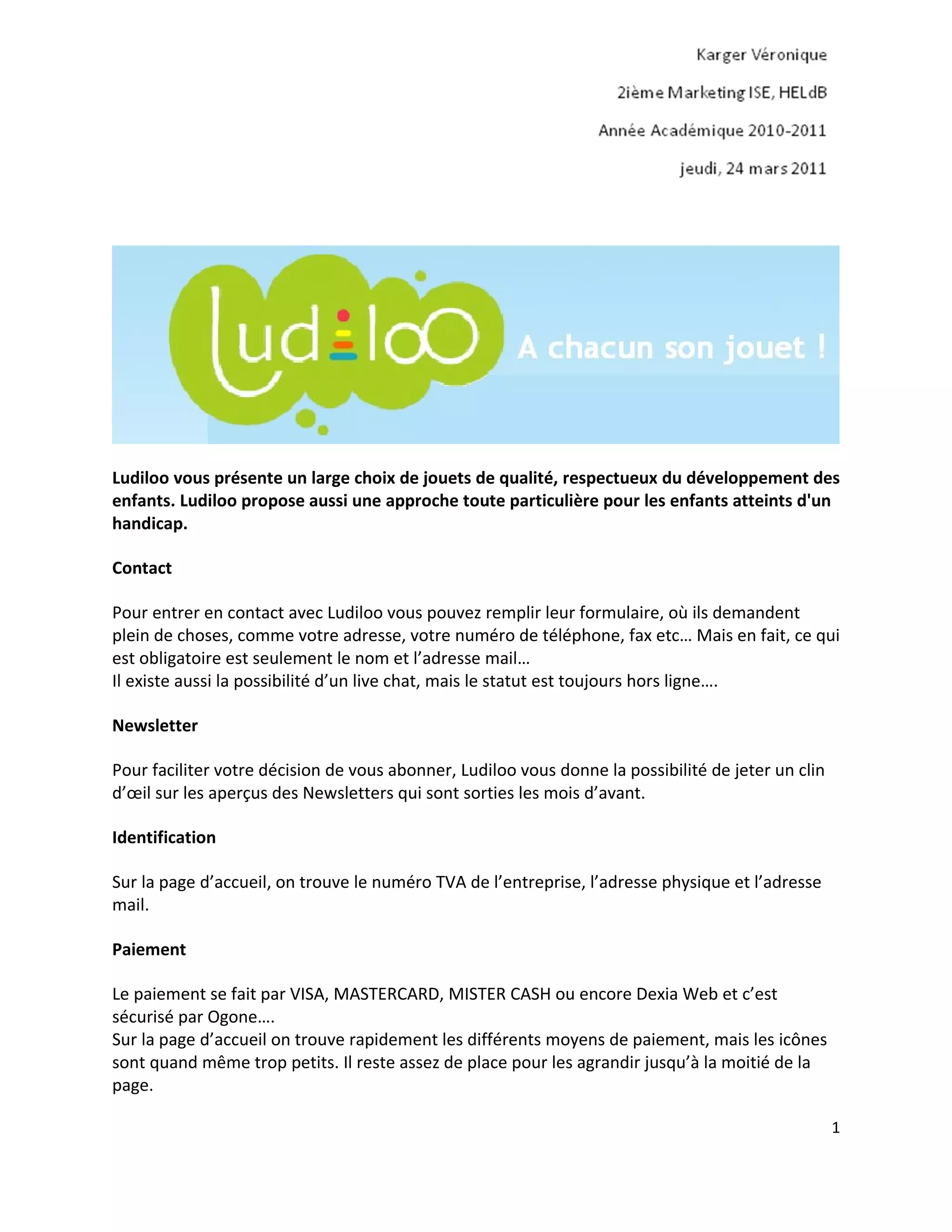 Ludiloo offre une large gamme de jouets adaptés au développement des enfants, y compris ceux en situation de handicap, mais son site présente des lacunes en ergonomie et en communication, comme des informations contradictoires sur les frais de port et des sections manquantes comme la FAQ. Les clients peuvent contacter Ludiloo via un formulaire ou un live chat, mais ce dernier est souvent hors ligne. Malgré un assortiment varié et la possibilité de créer une liste de cadeaux, l'absence d'onglets clairs pour les promotions et un manque de visibilité sur les réseaux sociaux posent des problèmes d'accessibilité et de navigation, conduisant à une note de 5/10 pour le site.