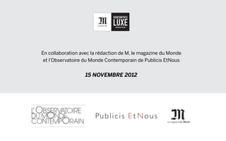 Le document discute de la génération Y et de son rapport particulier au luxe, soulignant qu'elle devient une cible clé pour ce secteur. Huit leviers sont identifiés pour séduire cette génération, incluant le désir, la légèreté, le storytelling, et d'autres éléments liés à leur culture contemporaine. Enfin, il questionne si cette génération pourrait transformer la notion même de luxe dans un avenir proche.