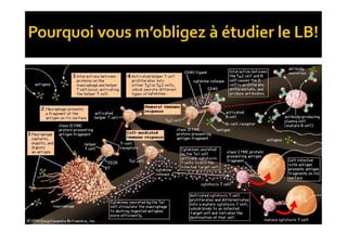 Le document traite de la maturation et de la différenciation des lymphocytes B dans le cadre du système immunitaire, en mettant l'accent sur les différentes phases de la lymphopoïèse. Il aborde également la réponse humorale aux antigènes, y compris les mécanismes de sélection et d'éducation des lymphocytes B au sein de la moelle osseuse et de la rate. Des détails sont fournis sur la structure des récepteurs B (BCR) et leur rôle dans l'activation et la mémoire immunologique.