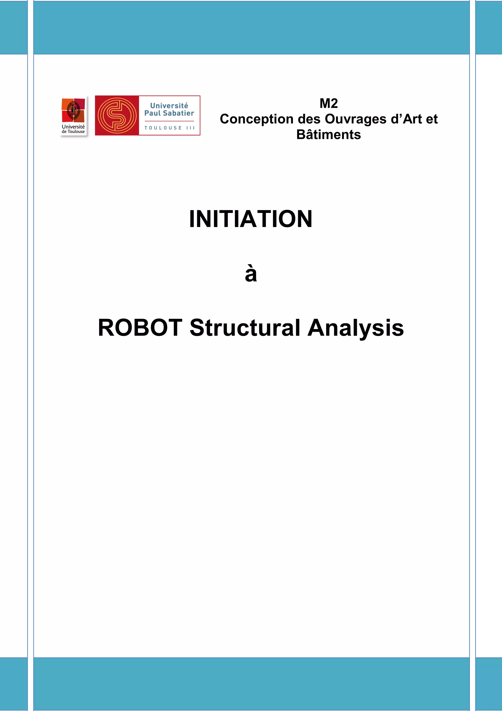 Le document présente une initiation à l'utilisation du logiciel Robot Structural Analysis, qui permet de concevoir et dimensionner des structures en utilisant divers modules spécialisés. Il détaille le démarrage du système, les types de structures étudiées, ainsi que la gestion par bureaux pour faciliter la modélisation et le dimensionnement. De plus, il aborde la personnalisation des préférences et l'application de charges spécifiques pour l'analyse et le dimensionnement d'un portique.