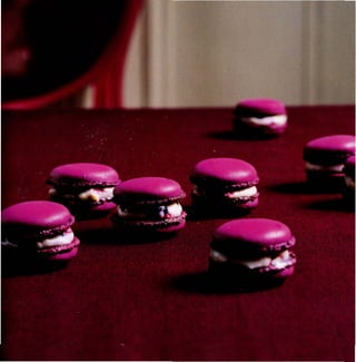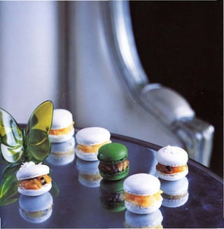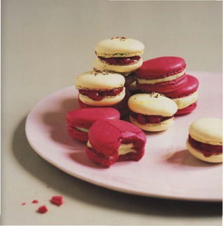 Le document présente une richesse de recettes et de techniques pour réaliser des macarons, incluant ingrédients, matériels nécessaires et étapes de préparation. Chaque recette est accompagnée de conseils pour réussir, notamment sur la cuisson et le macaronage. L'auteur encourage la créativité et la prise de plaisir en pâtissant.