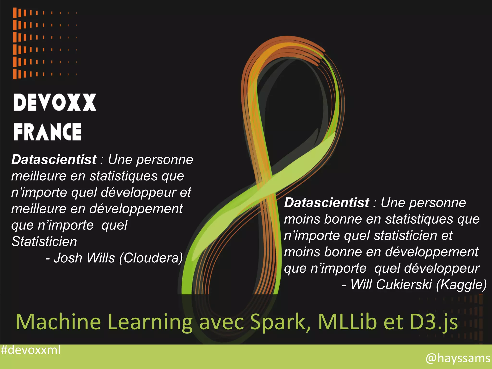 Le document présente une conférence sur l'apprentissage automatique utilisant Spark, MLlib et D3.js, soulignant l'importance de la préparation des données, de la sélection d'algorithmes et de la visualisation des résultats. Il expose divers concepts tels que la classification, la régression et le clustering, ainsi que des solutions aux défis rencontrés dans le processus d'apprentissage. La conclusion insiste sur la nécessité d'une bonne compréhension des prédicteurs et des labels pour tirer parti effective des techniques de machine learning.