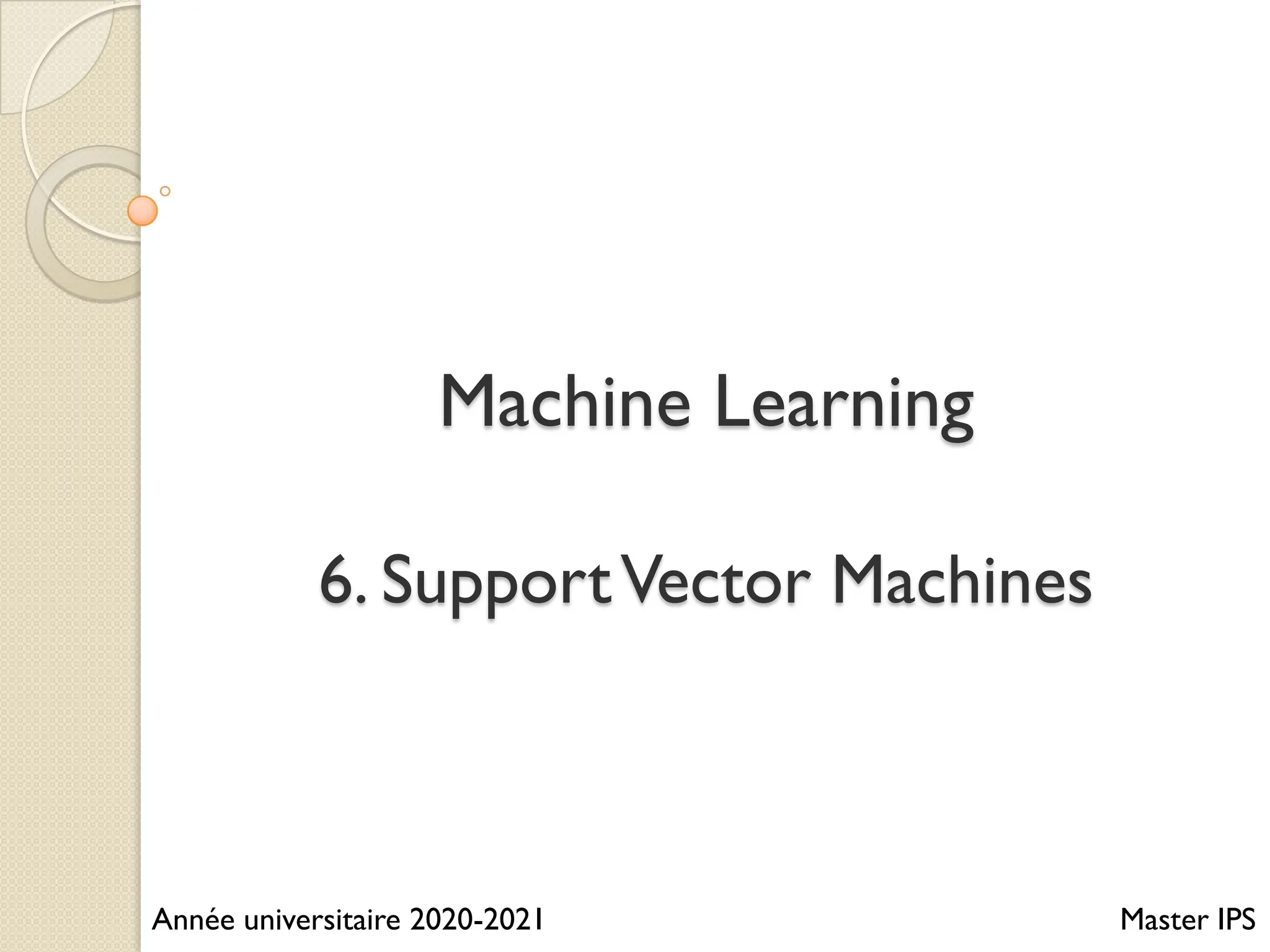Le document traite des machines à vecteurs de support (SVM) dans le cadre de l'apprentissage supervisé, en expliquant leur fonctionnement, leurs applications et les défis associés. Il présente des concepts clés tels que la maximisation de la marge et l'utilisation de noyaux pour traiter des données non linéairement séparables. Enfin, le texte aborde les avantages et les inconvénients des SVM en termes de robustesse et de complexité de modélisation.