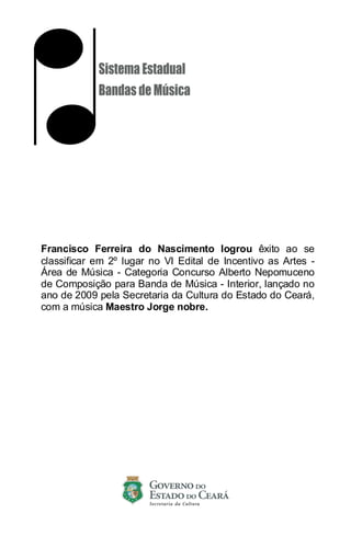 Francisco Ferreira do Nascimento a obtenu le 2ème prix du concours Alberto Nepomuceno de composition pour la musique de bande, avec l'œuvre 'Maestro Jorge Nobre', lors de la 6e édition du concours en 2009. La partition de 'Maestro Jorge Nobre' a été éditée en août 2010 par le gouvernement de l'État du Ceará, à travers la Secretaria de Cultura. Cette œuvre est destinée à divers instruments de musique à vent, incluant flûtes, clarinettes, saxophones, trompettes et trombones.