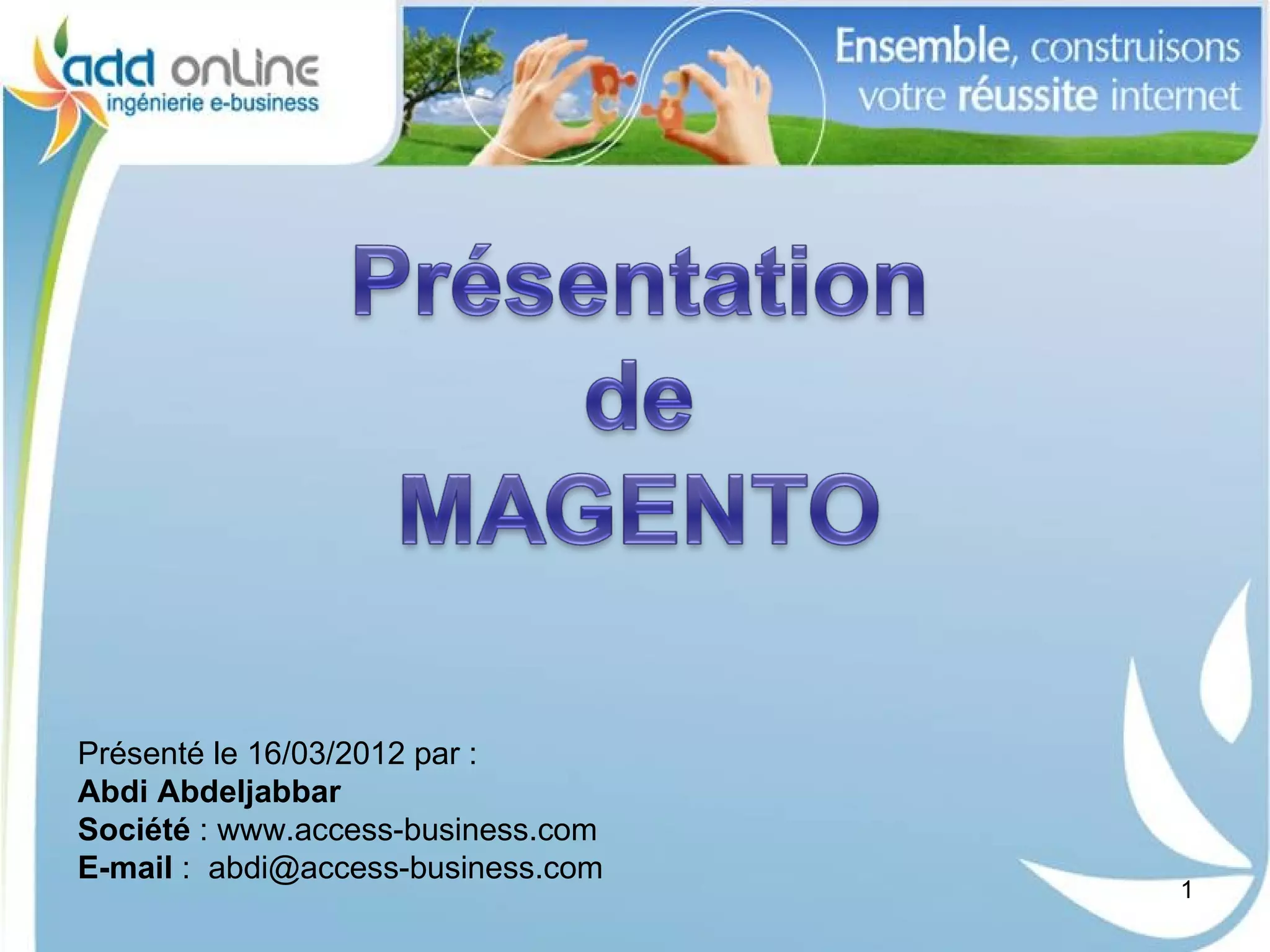Magento est une plateforme open source de commerce électronique créée en 2008, qui a rapidement gagné en popularité grâce à ses fonctionnalités complètes et sa qualité de développement. Elle propose des caractéristiques telles qu'un processus de commande en une seule page et des options d'expédition vers plusieurs adresses, tout en étant optimisée pour les moteurs de recherche. Sa construction sur le Zend Framework et le modèle MVC permet une architecture sécurisée et modulaire.