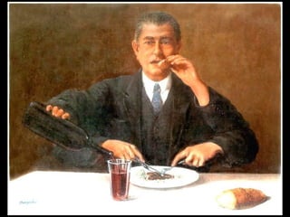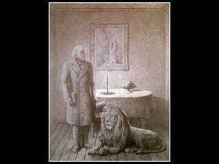 René Gislain Magritte, né le 21 novembre 1898 en Belgique, est un peintre surréaliste influencé par le cubisme. Son œuvre explore le mystère de la réalité à travers le décalage entre un objet et sa représentation, et il devient un des principaux artistes surréalistes belges. Sa carrière inclut des expositions nationales et internationales, ainsi qu'une fresque monumentale au casino de Knokke-le-Zoute entre 1951 et 1953.