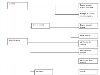 Le document présente la machine savonneuse 'savonicc' et détaille les différents types de maintenance, notamment préventive et corrective, nécessaires pour optimiser son fonctionnement. Il explique également l'élaboration d'un plan de maintenance préventive basé sur l'analyse AMDEC, qui vise à améliorer la disponibilité et la sécurité des équipements. En conclusion, il souligne l'importance d'une maintenance systématique pour garantir une efficacité optimale et des coûts maîtrisés.