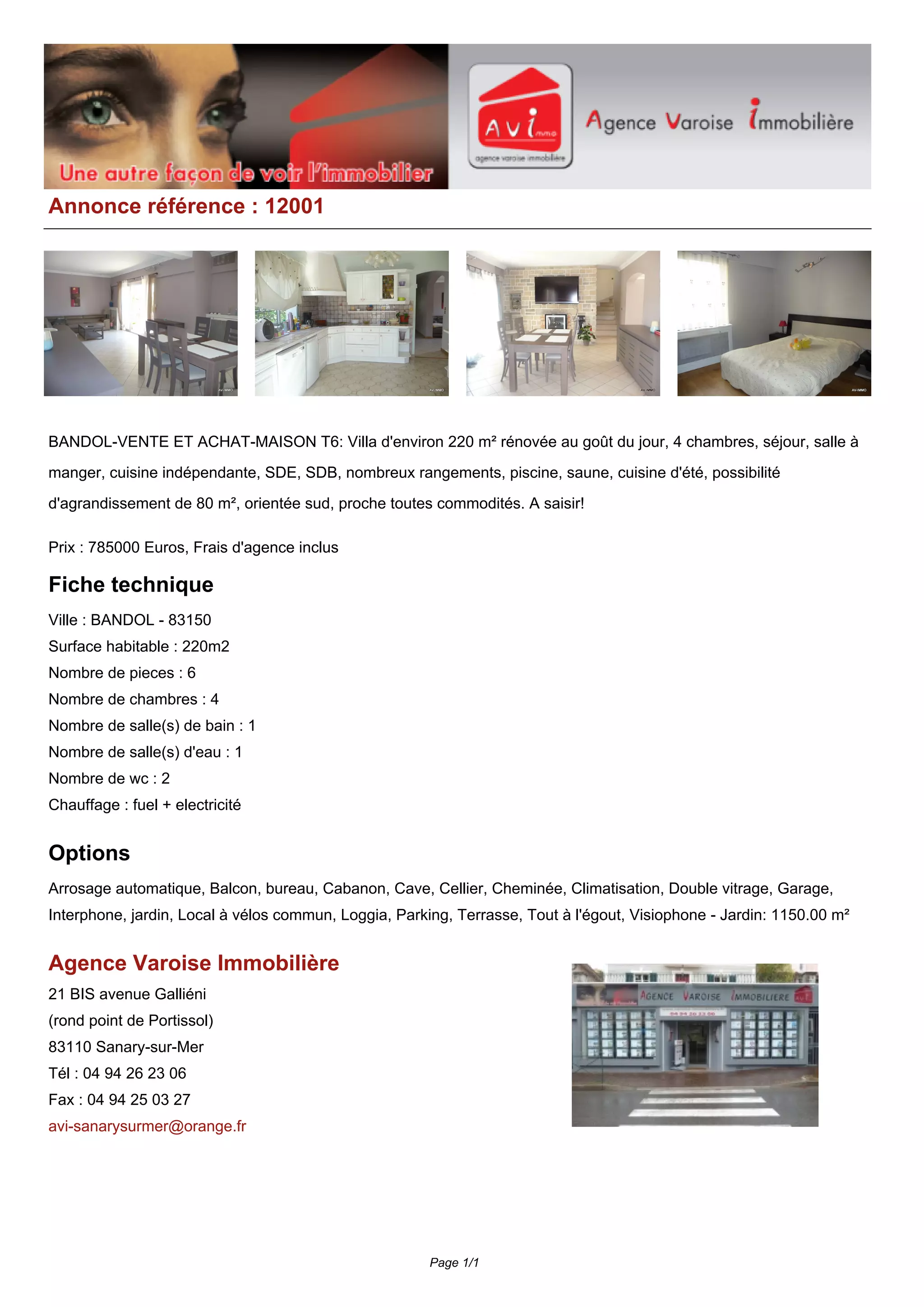 Villa rénovée d'environ 220 m2 à Bandol, comprenant 4 chambres, 1 salle de bain, piscine, et sauna, à vendre pour 785000 euros. La propriété offre de nombreuses options et un potentiel d'agrandissement de 80 m2, avec un jardin de 1150 m2. Localisée près des commodités, elle inclut également des équipements modernes tels que la climatisation et le double vitrage.