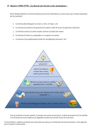Le document présente l'évolution historique du management, soulignant son émergence dans les années 50 à travers des théories majeures telles que celles d'Elton Mayo sur l'importance des relations humaines et de Maslow sur la hiérarchie des besoins. Mintzberg critique les idées reçues sur le rôle des managers, mettant en avant la complexité de leur travail au quotidien. Finalement, le management moderne se concentre sur des approches axées sur la motivation et l'intégration des individus dans des contextes variés.