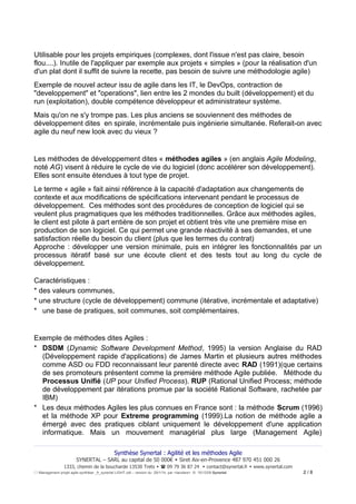 Ce document explore les méthodes agiles et leur importance dans la gestion de projets, mettant en avant leur flexibilité et leur capacité d'adaptation face à l'incertitude. Il présente les principes fondamentaux des méthodes agiles, ainsi que divers exemples et pratiques à utiliser dans des projets complexes. Enfin, il aborde les défis rencontrés par les managers de projet et les solutions préconisées pour améliorer l'efficacité des projets agiles.