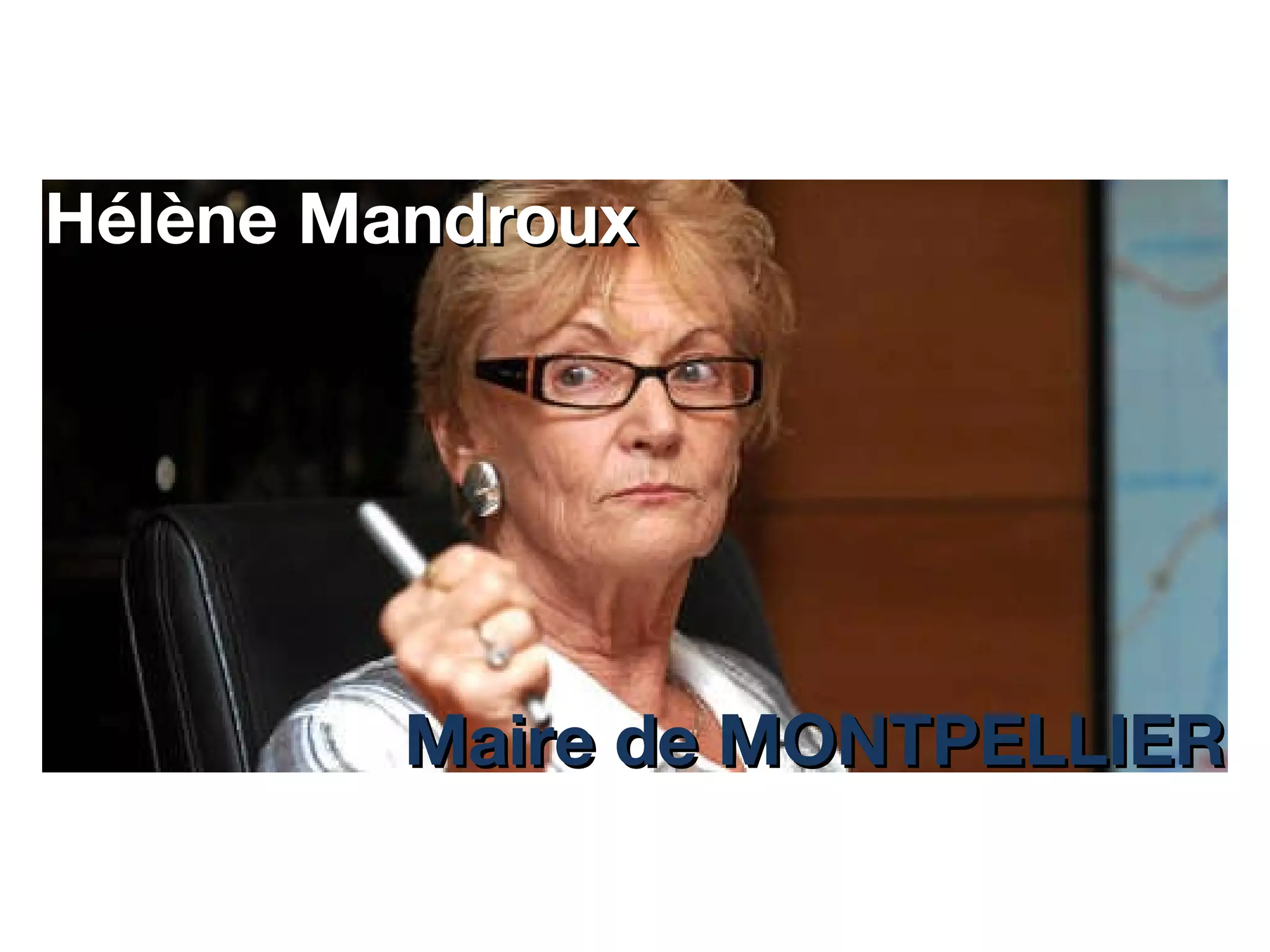 Hélène Mandroux, née en décembre 1940 à Montpellier, est une médecin et femme politique ayant été maire de Montpellier de 2004 à 2010. Élue pour la première fois au conseil municipal en 1983, elle a occupé divers postes avant de succéder à Georges Frêche. Elle a également joué un rôle clé dans la communauté d'agglomération de Montpellier et a été réélue lors des élections municipales de 2008 avec 51,88 % des voix.