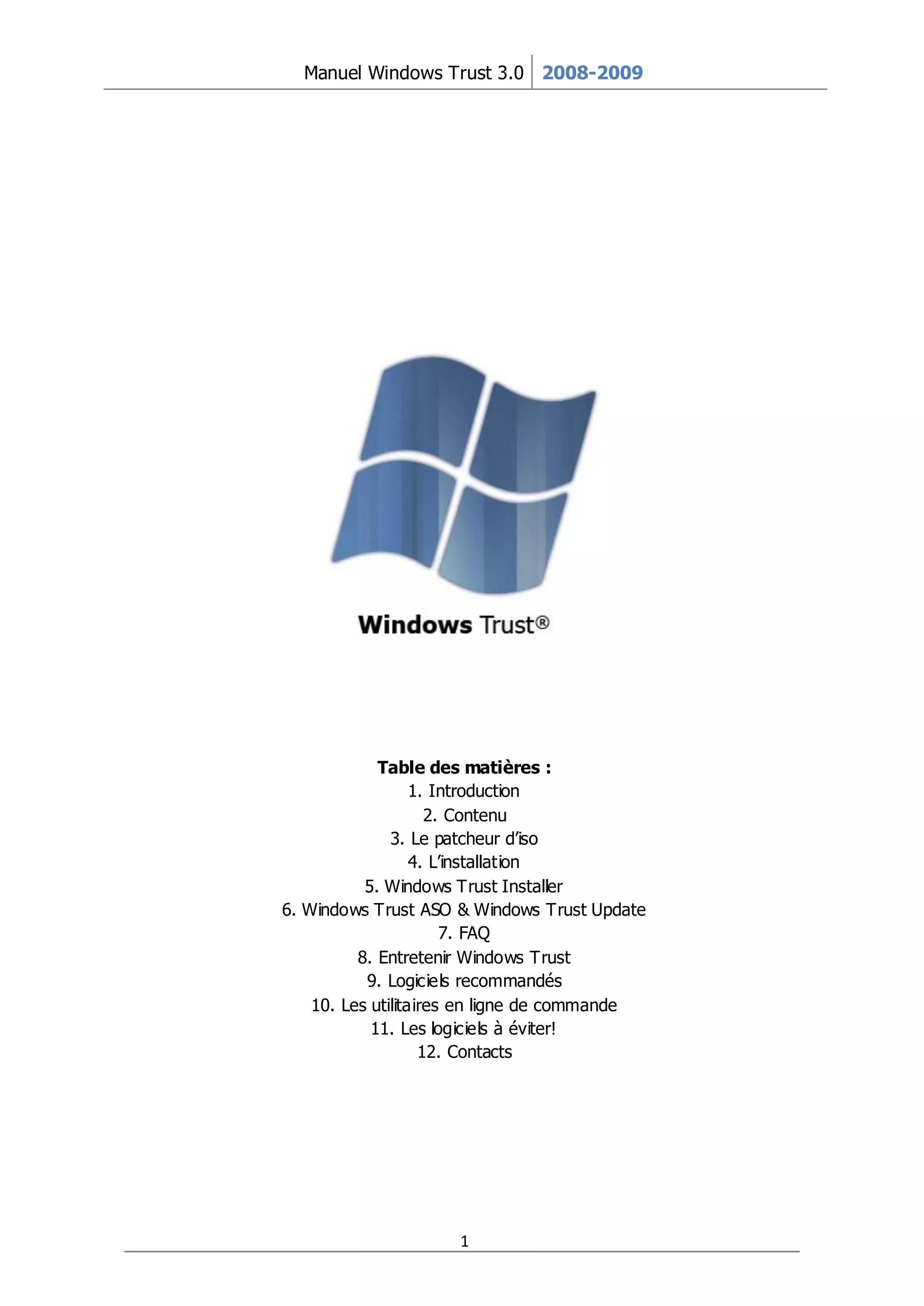 Le manuel Windows Trust 3.0 présente la nouvelle version de cette distribution, qui promet des améliorations notables en termes de compatibilité et d'ergonomie, ainsi qu'une structure multiboot pour faciliter l'installation. Parmi les fonctionnalités clés, on trouve un patcheur d'ISO innovant, une sélection variée de logiciels intégrés, et des outils de mise à jour pour maintenir le système à jour. Cette version vise à offrir une expérience utilisateur optimisée et simplifiée, sans négliger les choix de personnalisation.