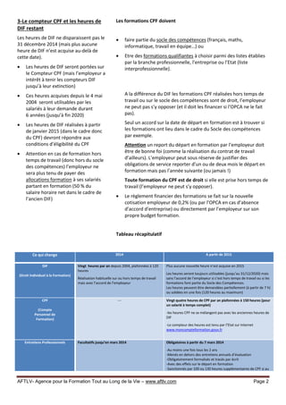 La loi du 5 mars 2014 sur la formation impose des changements majeurs pour les entreprises, incluant l'obligation d'entretiens professionnels tous les deux ans et la disparition progressive du Droit Individuel à la Formation (DIF), remplacé par le Compte Personnel de Formation (CPF) à partir de 2015. Le CPF permet l'acquisition d'heures de formation, qui sont gérées par l'État et doivent respecter des conditions d'éligibilité, notamment en relation avec le socle de compétences. Les nouvelles règles renforcent les droits des salariés concernant les formations et l'employeur doit suivre des procédures spécifiques pour traiter les demandes de CPF.