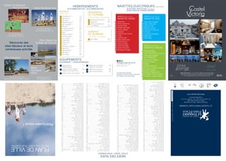 Le document présente un plan détaillé des navettes électriques dans la ville de Le Touquet-Paris-Plage, incluant les arrêts, les itinéraires, et les services disponibles tels que les pistes cyclables et les allées piétonnières. Il fournit également une liste des hébergements et des informations pratiques pour les usagers. Ce service de navette est offert gratuitement chaque 30 minutes.