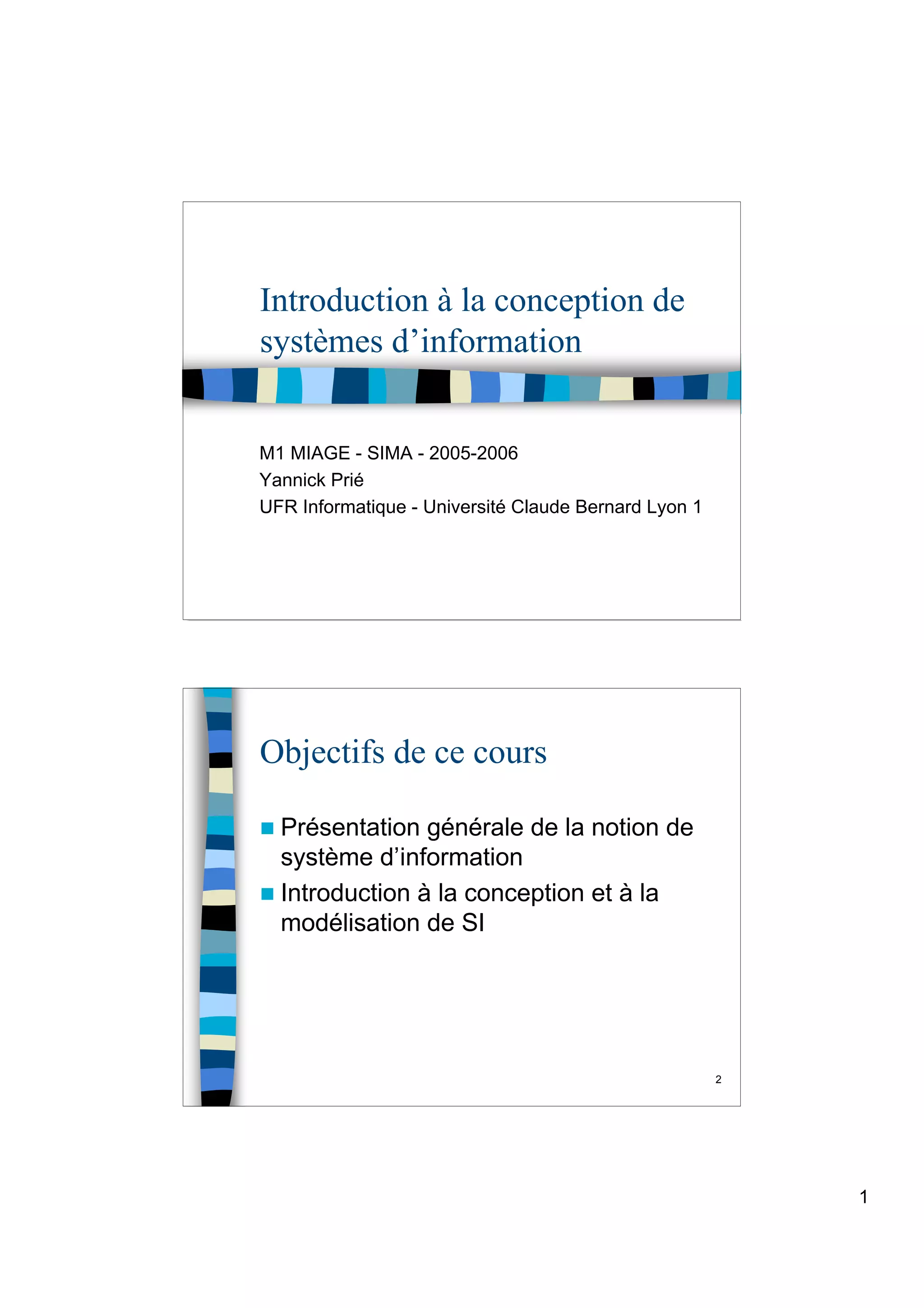 Ce document présente une introduction à la conception des systèmes d'information, décrivant leur définition, leur structure et leur rôle dans les organisations. Il aborde également l'évolution historique des systèmes d'information, leurs objectifs, ainsi que les processus de modélisation nécessaires à leur conception. Enfin, le document traite des défis liés à l'intégration technologique et à la gestion des résistances au changement dans les organisations.