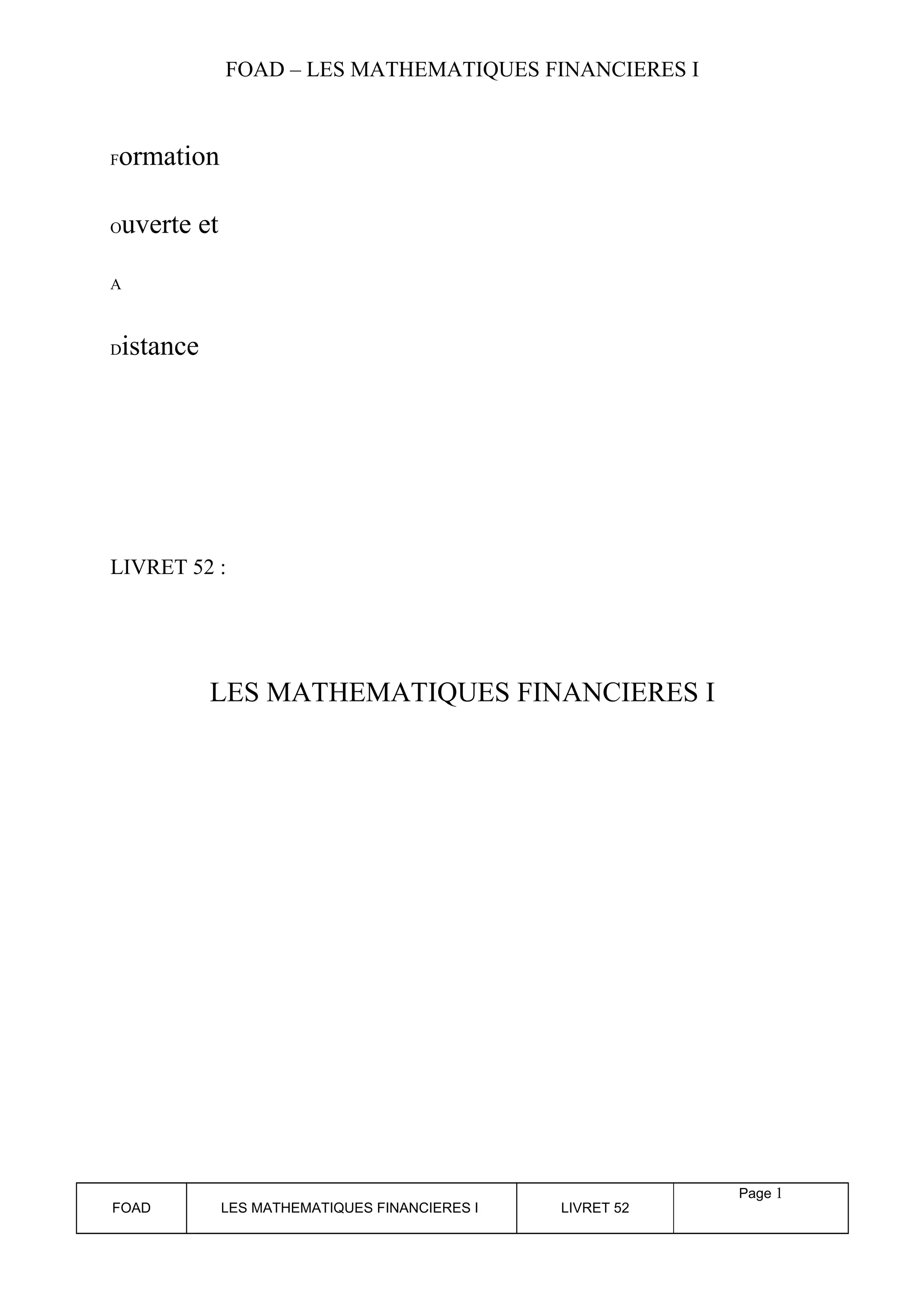 Le document traite des mathématiques financières, en se focalisant sur les intérêts simples et composés, ainsi que sur l'escompte commercial. Il présente des définitions clés, formule des calculs d'intérêts et des exemples pratiques pour illustrer les applications des concepts financiers. Plusieurs exercices d'application sont également fournis pour aider à la compréhension des notions abordées.