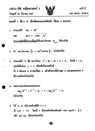 ข้อสอบ O-net 52 ม.6 (ปีการศึกษา 2551)พร้อมเฉลย