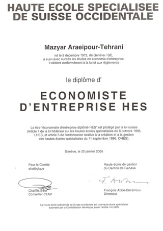 Mazyar Araeipour, expert diplômé en finance et controlling, possède une solide expérience professionnelle en tant que Chief Financial Officer et Controller dans le secteur pharmaceutique, notamment chez Diepharmex SA. Il a mis en place des stratégies financières, des analyses d'investissements et a géré la comptabilité dans plusieurs pays de l'UE. En outre, il est enseignant et formateur dans des établissements de formation, contribuant à l'évaluation et à la formation de futurs experts en finance.