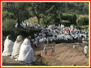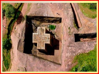 Les églises chrétiennes coptes de Lalibela en Éthiopie, sculptées dans la roche au XIIe siècle, sont des exemples remarquables d’architecture monolithique et ont été déclarées patrimoine mondial par l'UNESCO en 1978. Ces constructions, encore en fonction aujourd'hui, témoignent d'une tradition religieuse ancienne, où la vie quotidienne n'a pas changé depuis des siècles. Lalibela, un site méconnu jusqu'à récemment, est considéré comme l'une des merveilles architecturales du monde.