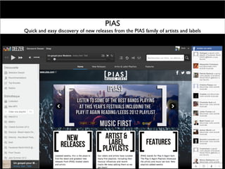 ![[MBF2] APIs Deezer par Cédric Pascal & Louis Cheynel](https://image.slidesharecdn.com/slidesdeezer-150316093623-conversion-gate01/85/MBF2-APIs-Deezer-par-Cedric-Pascal-Louis-Cheynel-20-320.jpg)